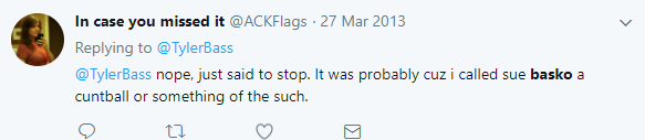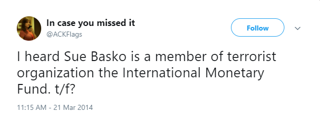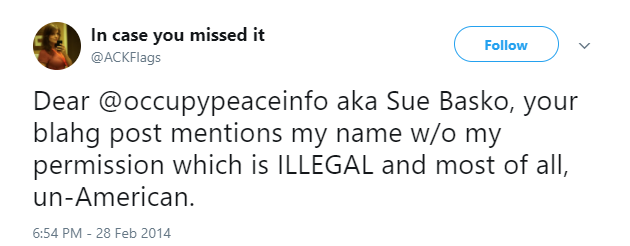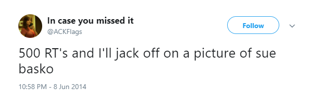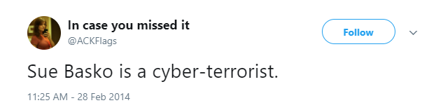 The internet became a little more serious place after Jaime Cochran decided to leave. Jaime aka @ackflags was an internet legend in her own time and will be immortalized as one of the most artfully skilled Trolls in the history of trolling.