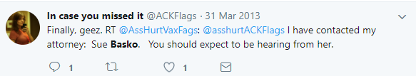 Consequently Sue Basko was a perfect target for Jaime’s trolling, most of which went right over Basko’s head and was taken seriously. Jaime helped make Sue Basko eFamous as an idiot.