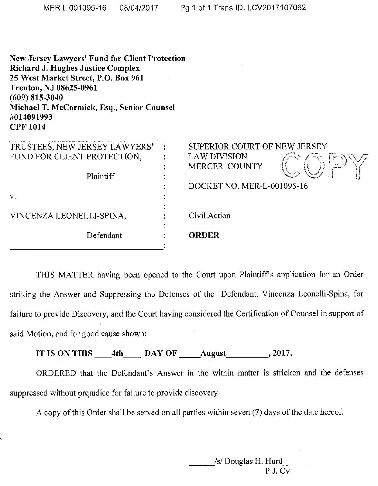Meanwhile Vinnie’s next hearing date is September 17th. The judge ruled in favor of the New Jersey Lawyer’s Fund and have strike any answers and defense Vinnie might make because she didn’t cooperate on the discovery process by answering questions and providing documents.