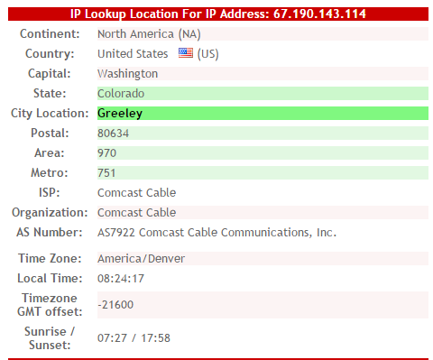 Lyndsey is a mother and housewife and lives in Greeley, Colorado which is where the IP resolves to. Besides being Neal’s latest Enabler and Apologizer, Lyndsey works for another infamous internet character, Doug Spink, promoting his Cryptostorm top secret super duper anonymous browser. You’d think Lyndsey would get free use of the service especially when she plans to make anonymous threats on behalf of All Anonymous.