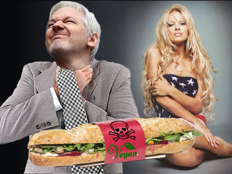 0Hour loves to spread any rumor or bit of gossip he finds on the internet and pass it off as his own intel from secret sources.  Besides his recent pizzagate goofiness, he’s claiming that Julian Assange was poisoned by Pamela Anderson via a Vegan Sandwich.  Seriously.