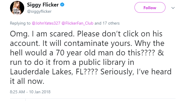 OMG OMG OMG!!! Siggy Flicker tweeted to me!