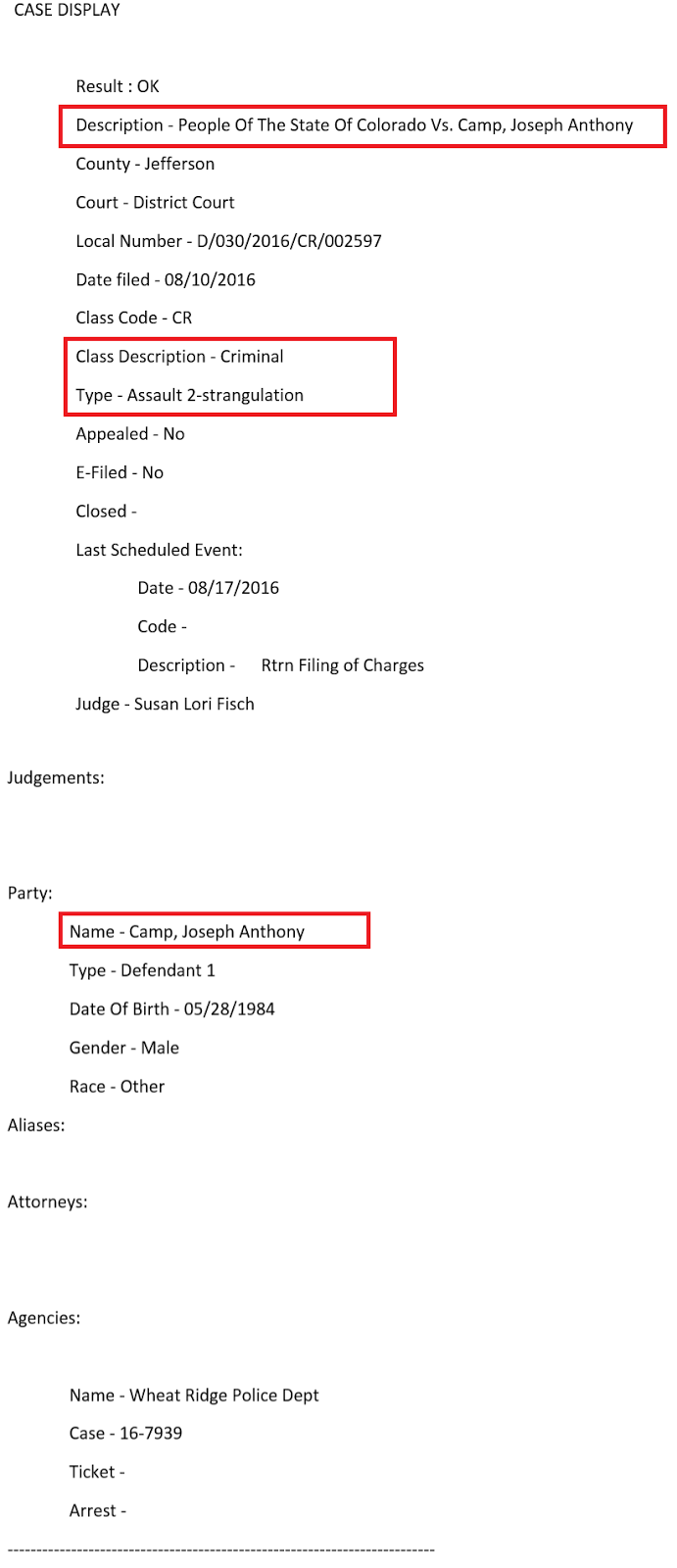 JoJo Camp had a pretrial hearing yesterday regarding numerous charges from his arrest on Tuesday. He’s been charged with several felonies including a Second Degree assault charge that is considered a Crime Of Violence and carries a minimum sentencing of 5 years just by itself. And then there’s the strangulation assault…