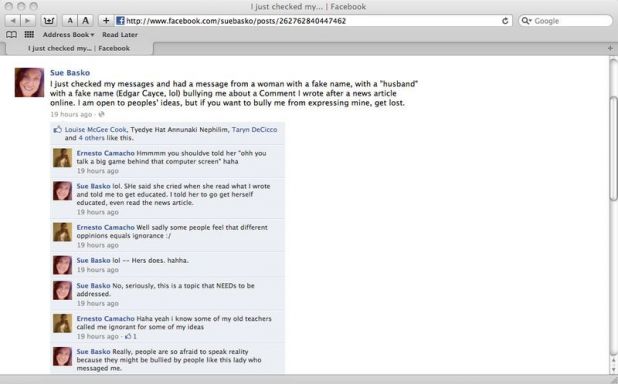 If you look at the comment below, it was made by “Sue Basko, Top Commenter”. To achieve the label of Top Commenter takes reading a lot of articles and writing a lot of comments. The idea that a “professional stalker” spent months, if not years, posing as Sue Basko in order to discredit her by offending parents of autistic children is preposterous.