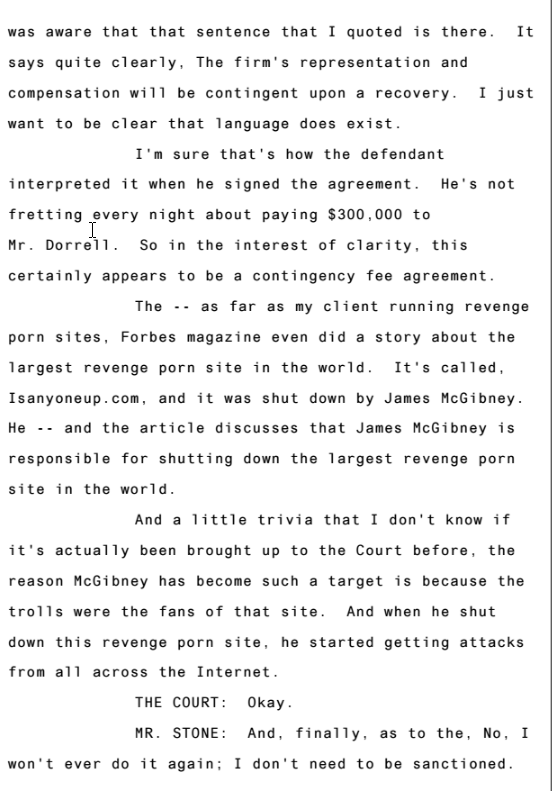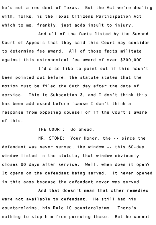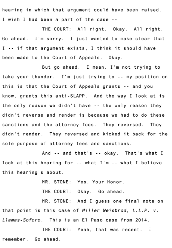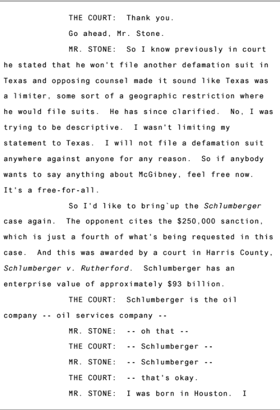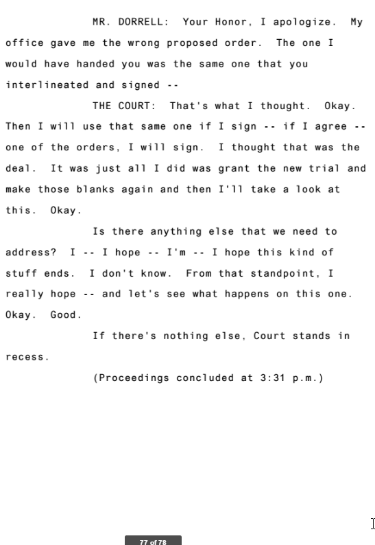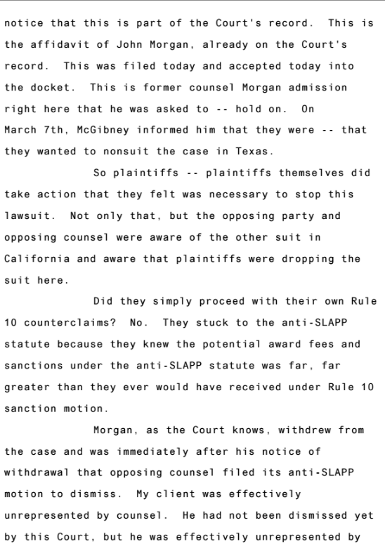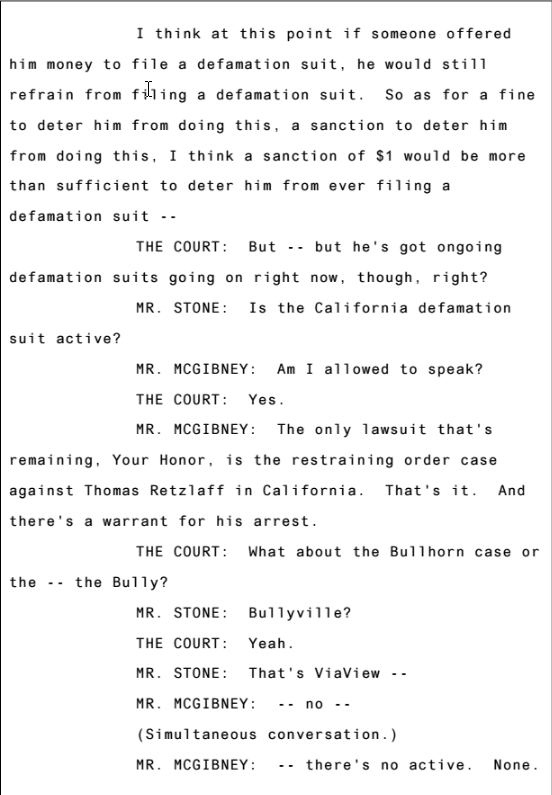 A month ago on April 7th, the new Texas trial for sanctions against Bullyville was held, the transcript of that trial is below.
