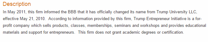 This is the only complaint about Trump University still available on the Better Business Bureau website. Both complaints and ratings disappear after three years.