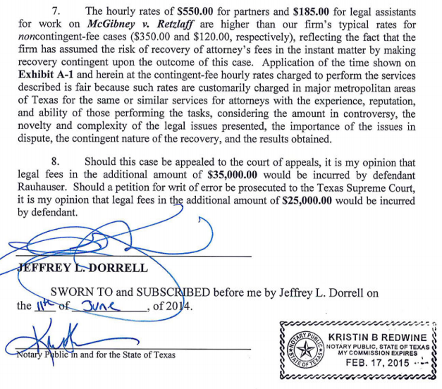 Now Rauhauser and Dorrell claim Neal has been a paying client and not on a contingency basis. That’s not according to the first bill presented by Dorrell. The signed and notarized document states specifically that Neal is a contingency fee client.