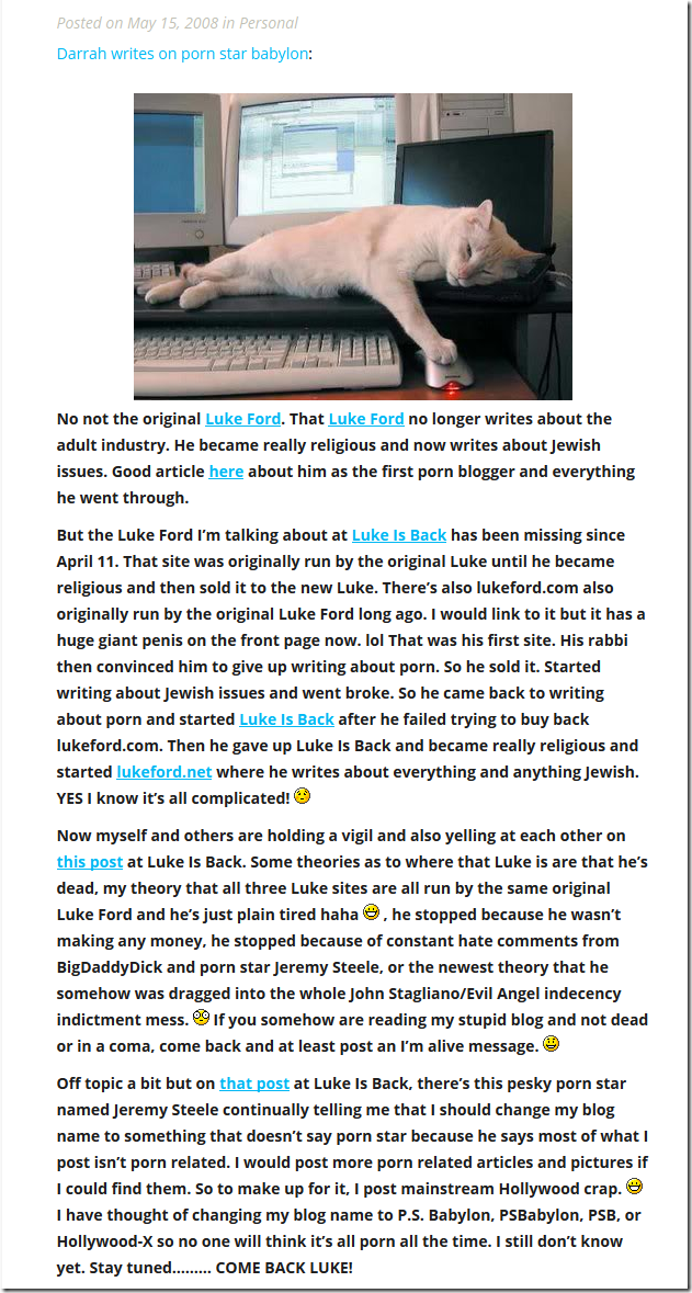 Darrah Ford was an anonymous blogger who wrote gossip about the porn world. After she suddenly quit blogging it’s believed she became the notorious Twitter troll OccupyRebellion