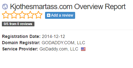 A little over a week later, on December 12, 2012 Kjothesmartass.com was registered.