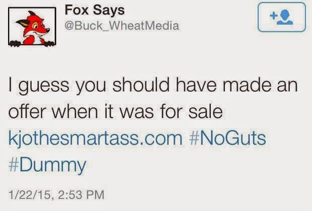Another domain owned by King is kjothesmartass.com. Spina and King bought the domain and then tried to extort Kjo to pay them $10,000 for it. In the screen caps below, @Buck_WheatMedia was Vinnie Spina, before that account was suspended. Trolld0x was Brandon King.