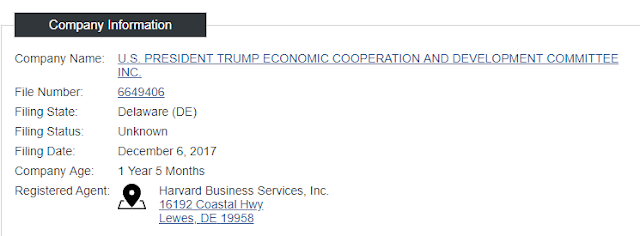 I believe the most recent business Crazy Charlie created was the U.S. President Trump Economic Cooperation And Development Committee Inc. He incorporated this business on December 7th, 2017. The Safari Night Ball at Mar-a-Lago was held 7 weeks later on January 26th, 2018.