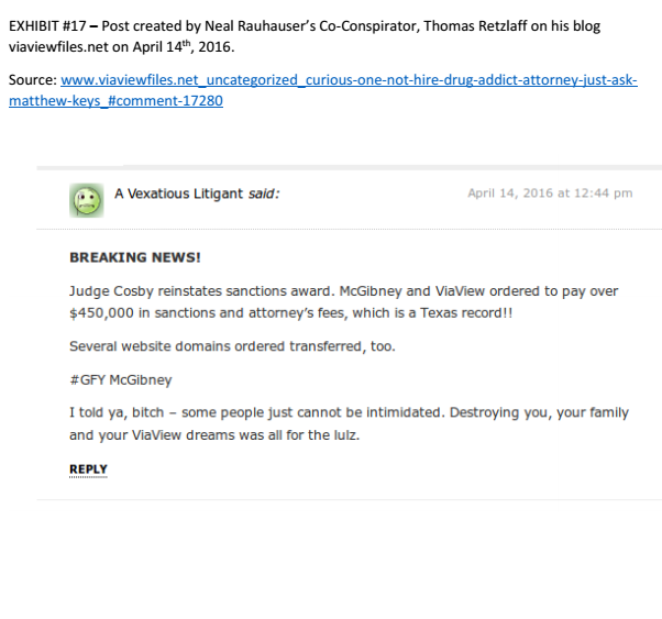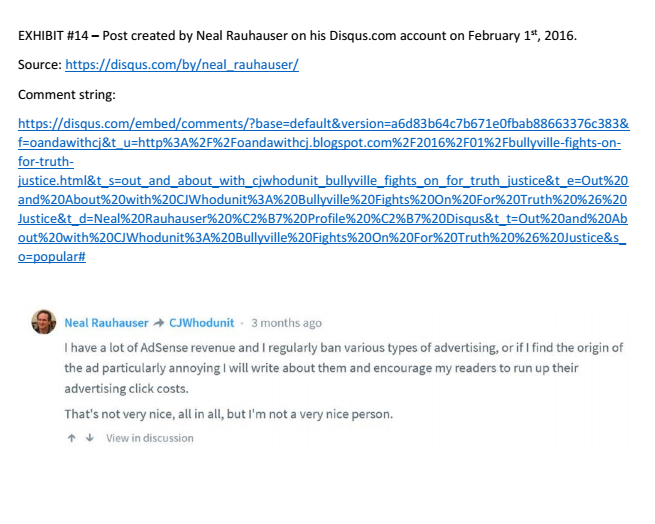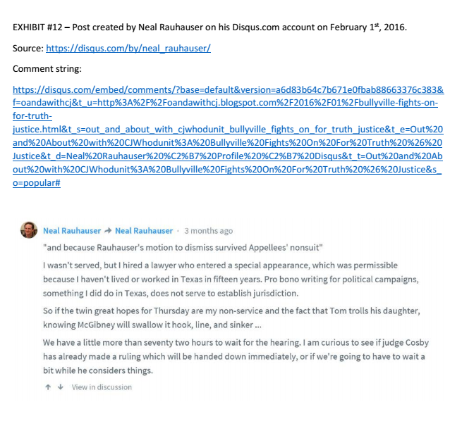These are the supplemental exhibits included with Bullyville’s motion which is here.