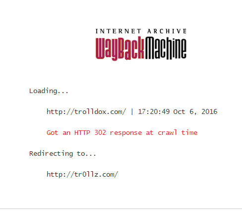 In case you need to show that trolldox and tr0llz.com were both harassment sites. The 2 screen captures below show that trolldox redirects to tr0llz,com
