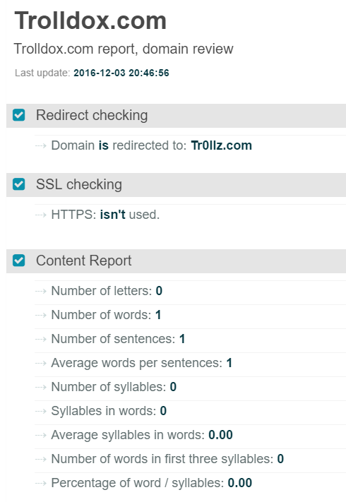 You may want to show that the trolldox.com domain was was suspended in 2015.
