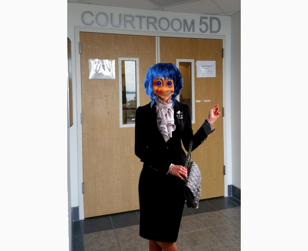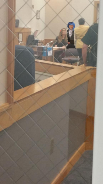 Here I am in front of the courtroom where Marcie was supposed to be