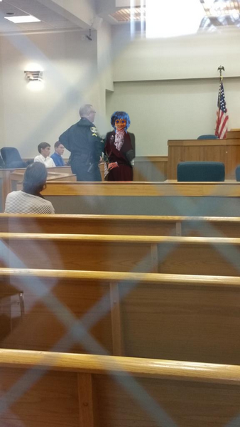Here I am inside the courtroom. The policeman is telling me about Marcie’s drunk phone call. He did a very good impersonation of Drunk Marcie.