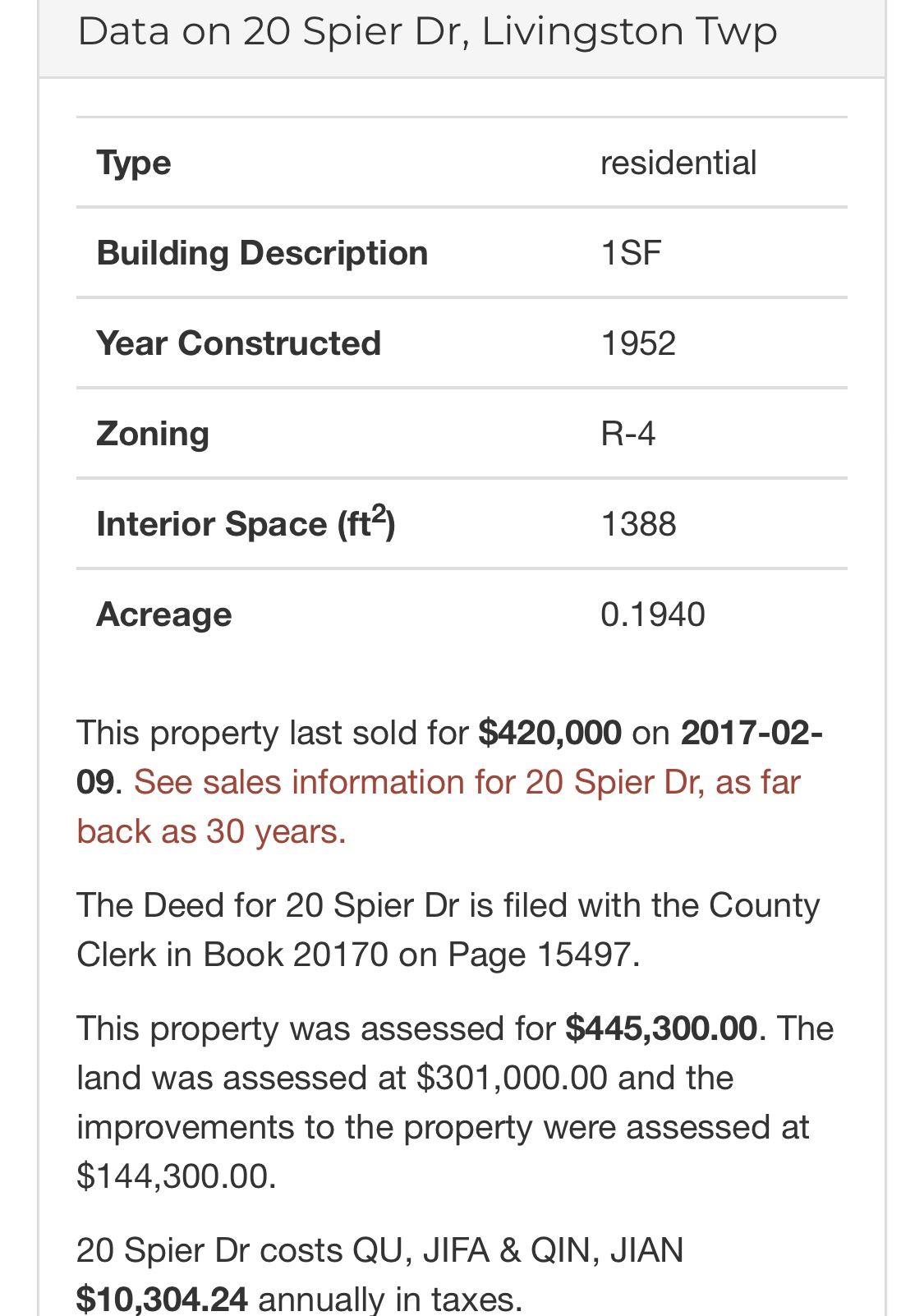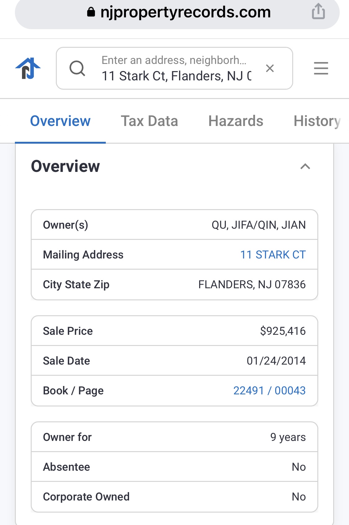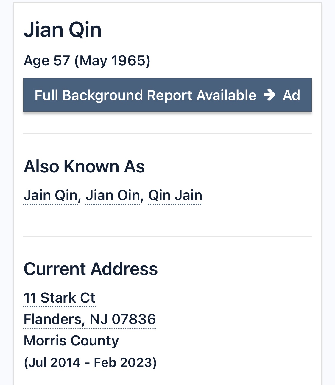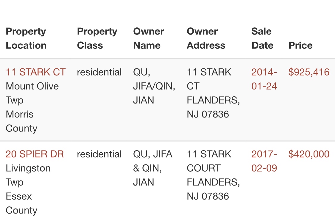 In 2014, just before she turned 20, Grace purchased a condo on Park Avenue for $4.8 million. At the same time she gave power of attorney to the condo board, so this was an investment and income generating purchase. That year, Jian Qin and Jifa Qu purchased a home in New Jersey