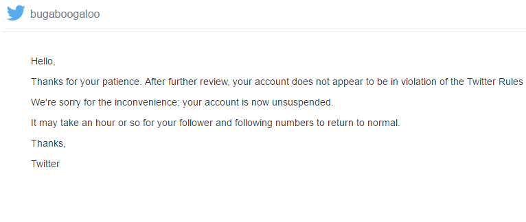 Ah yes, that time when you give Twitter proof that you’re actually the target of harassment rather than the harasser and they agree.