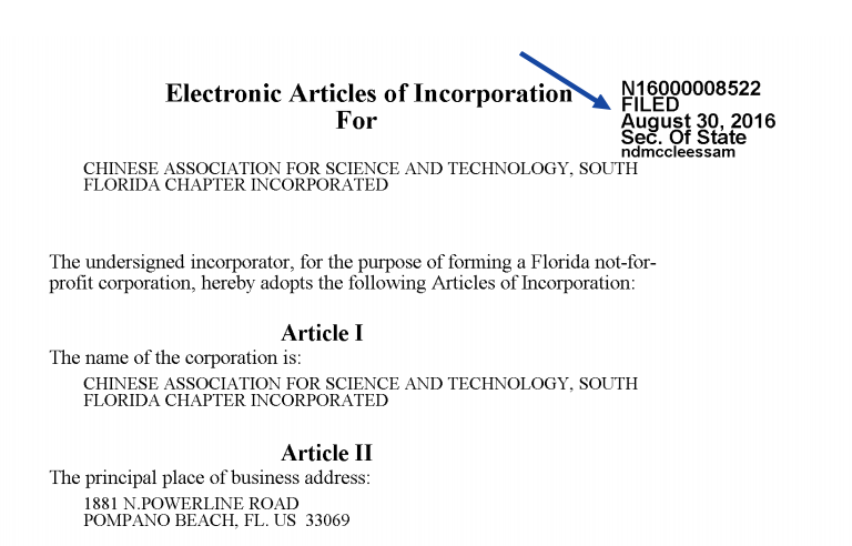 A month after the APAAC was selected, another organization with ties to CCP also created a chapter in Florida. This was the Chinese Association of Science and Technology (CAST).