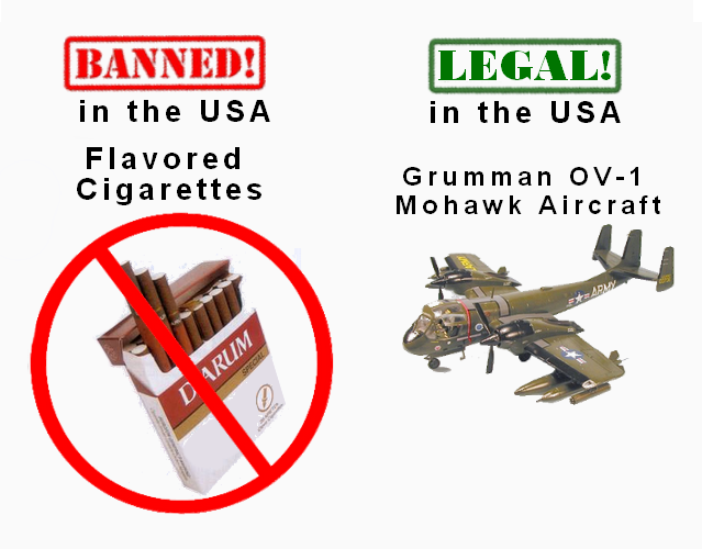 It’s illegal to sell flavored cigarettes, like those stinky clove cigarettes, in America. You can put the money you save from not smoking towards the purchase of your very own Mohawk aircraft.