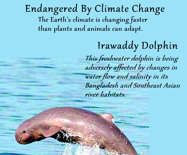 The Irawaddy dolphin lives in freshwater and is being adversely affected by changes in water flow and salinity in its Bangladesh and Southeast Asian river habitats