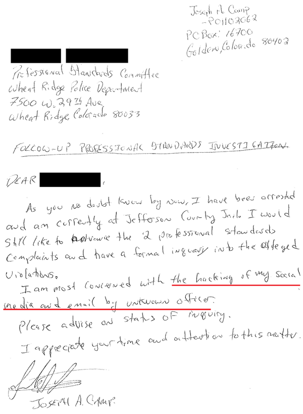 In the letter below, JoJo is attempting to get an investigation started as a result of his arrest. Apparently he wrote several complaints about the officers who arrested him and he’s accusing them of hacking his email and social media accounts.