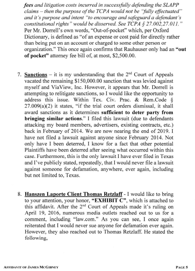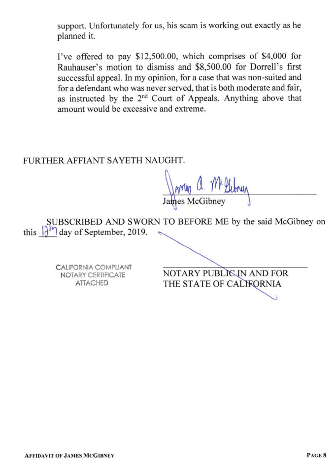 Below is the affidavit submitted to the court today by James McGibney asking Cosby to decide against Dorrell. There were an additional 25 pages of Exhibits that I didn’t screen cap, the affidavit will give you a good sense of what’s been going on.