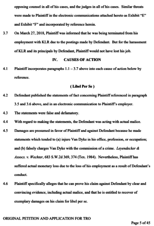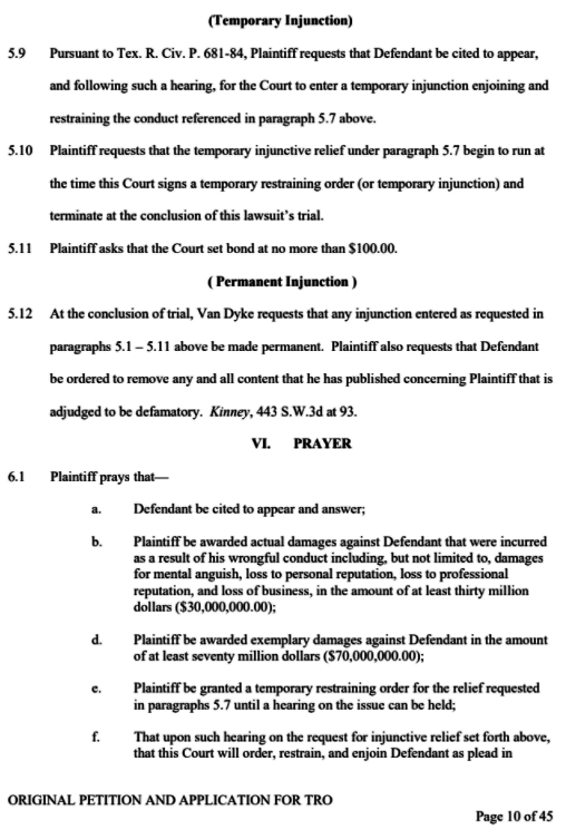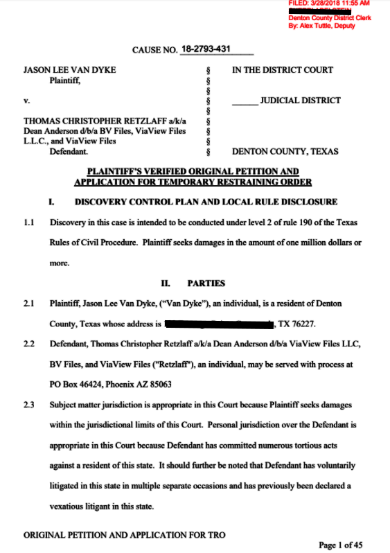 Infamous Texas lawyer, Jason Van Dyke, has filed a defamation lawsuit against infamous serial stalker, Thomas Retzlaff. This could be the court case of the century!