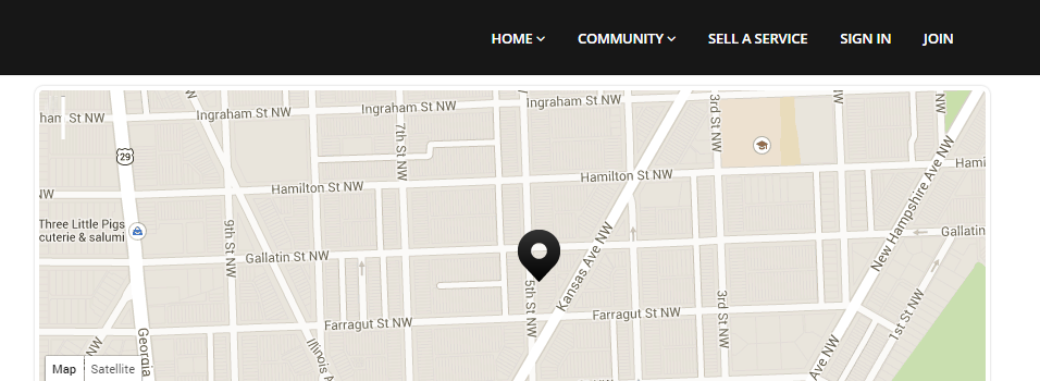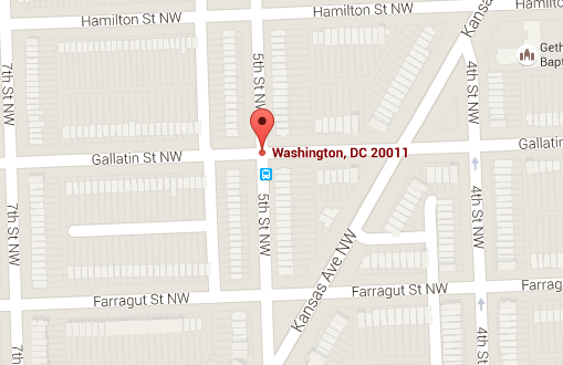 The IP address 72.83.46.64 geolocates to NW 5th St and NW Galladin in Washington, DC.