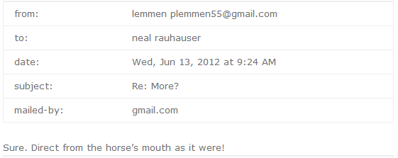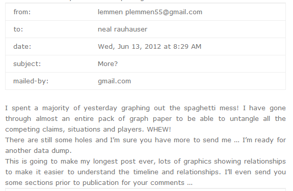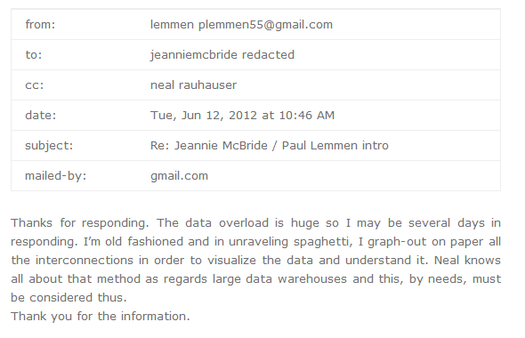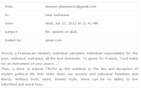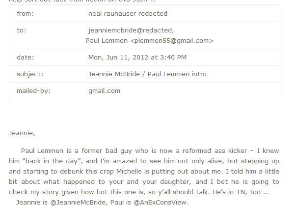 This email exchange is between Neal Rauhauser and conman turned cleric, Paul Lemmen. Basically two bullshit artists bullshitting each other.