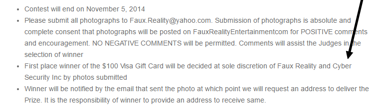 Here’s a screen capture of a post on the FauxRealityEntertainment blog from Halloween of 2014. It shows there was a relationship between Faux Reality aka “Antonella Mollica” aka Vinnie Spina, and Cyber Security Inc, the business started by Vinnie Spina and Brandon King that offered online harassment as one of their services.