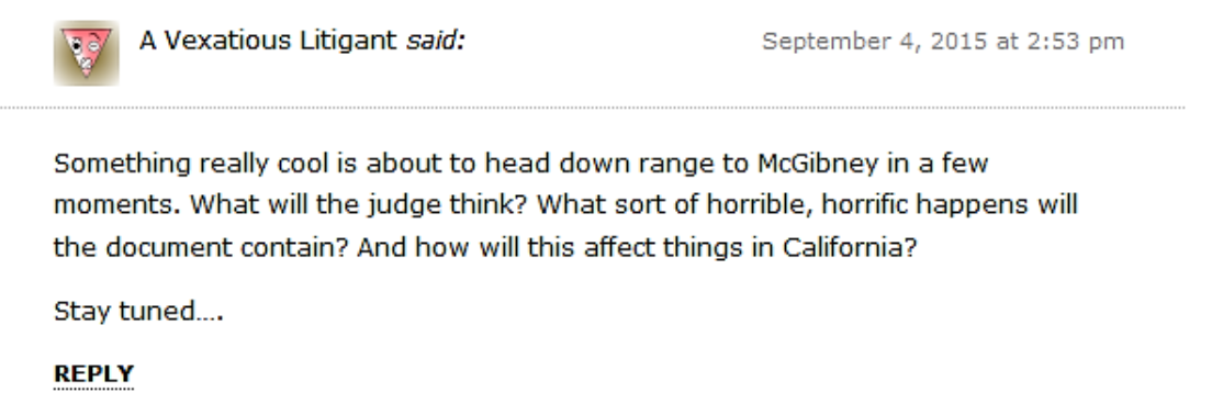 On Friday, September 4th, a motion for sanctions was filed by lawyer Jeffrey Dorrell on behalf of Neal Rauhauser. Tom Retzlaff, who is not a party to the case, somehow knows that the motion is going to be filed and mentions it in a comment on his blog before it happens. (The motion was withdrawn later)