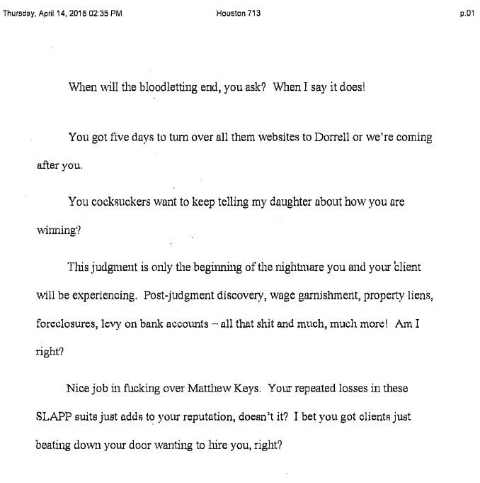 Earlier this month Tom Retzlaff sent another threat to attorney, Jay Leiderman. Retzlaff is not a party to the Bullyville lawsuit in Texas and Leiderman is not Bullyville’s attorney in Texas.