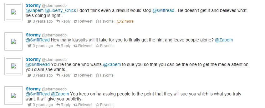 Stormpeedo is alleged to be an early account of OccupyRebellion aka Darrah Ford. Here she defends Neal Rauhauser’s arch nemesis Zapem.