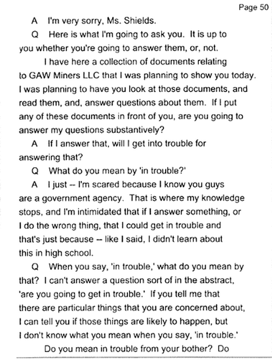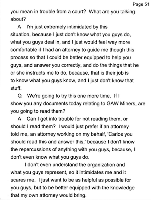 An informal investigation into GAWMiners by the Securities and Exchange Commission was announced in February of this year but leaked a month earlier by Coinfire.io, an online magazine devoted to cryptocurrency news. Carlos had to know he’d be involved in the investigation so it should have been no surprise that the SEC wanted to ask him some questions and supply certain documents. He had months to prepare and hire a lawyer. Instead he dicked the SEC around and requested extentions to delay his appearance. When Carlos finally showed up, he did so without the requested documents and avoided answering questions in an attempt to stonewall the investigation.