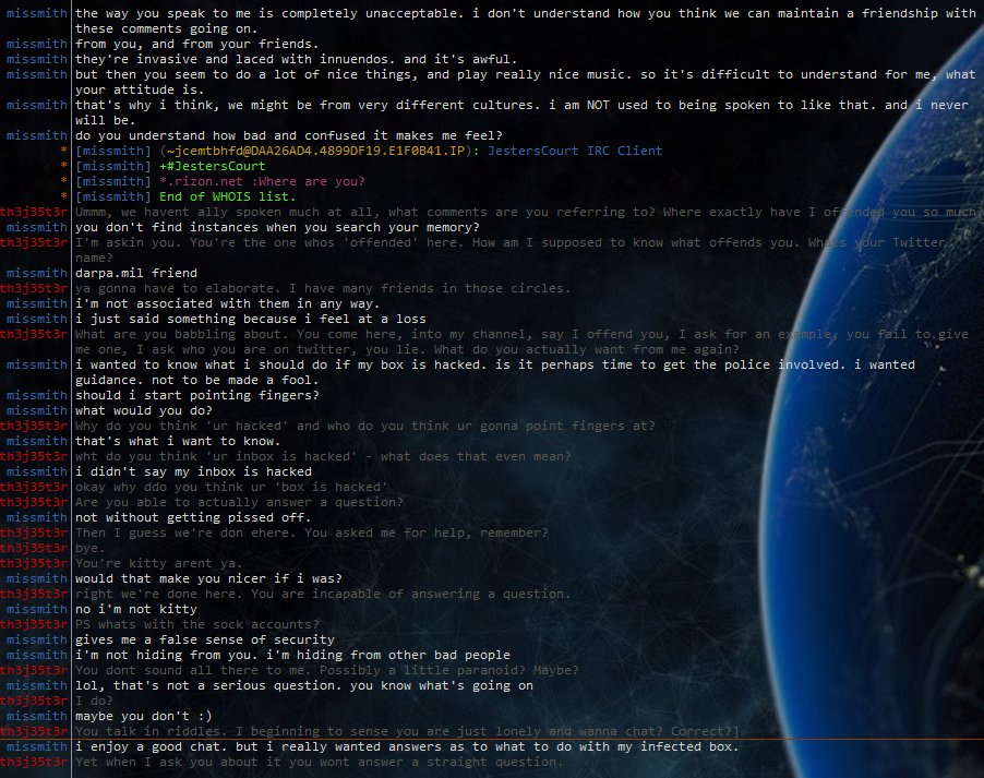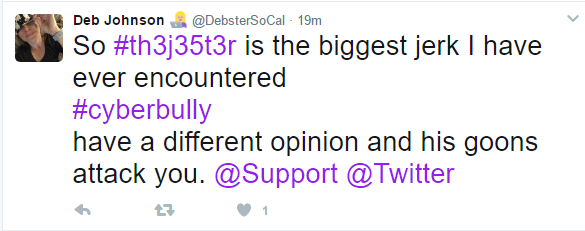 Jester posted this exchange with “misssmith” as proof of stalking.