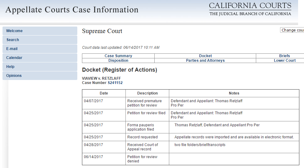 And now today Tommy lost again. There was a lawsuit in California between Retzlaff and Bullyville which is long over. Retzlaff tried to get the case reviewed by a higher court. They denied his case today. The law suit is totally over and Tommy can’t do anything to resurrect it.