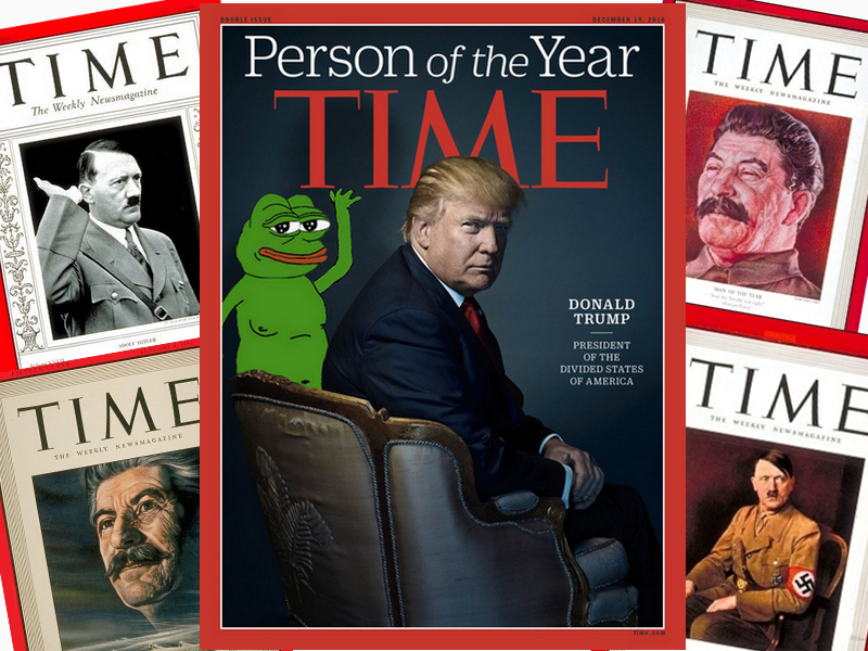 President of the Divided State Of America is appropriate. Time should have put Pepe in there with Donald.