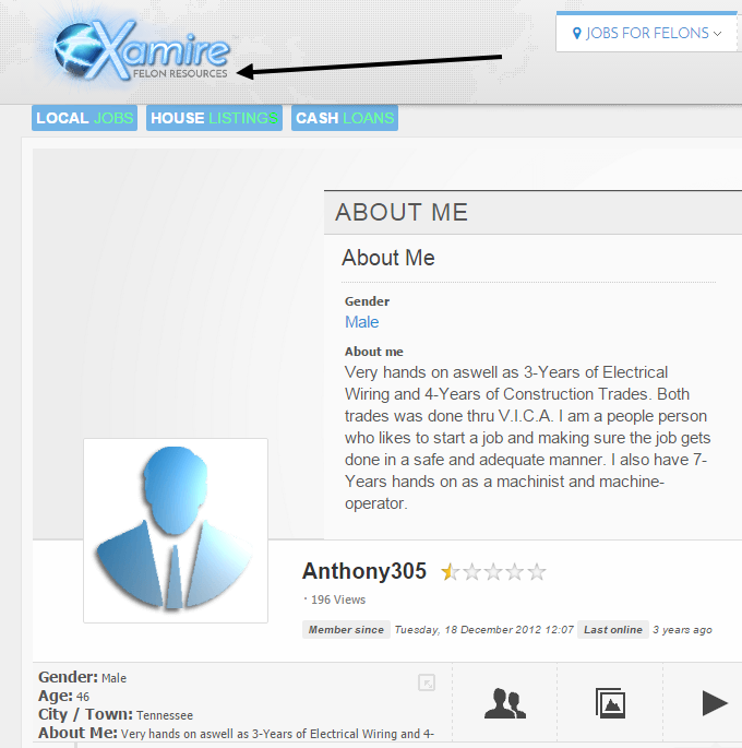 This is funny! Tommy used the Anthony305 account to post an ad looking for work on a website for felons. He used his actual age at the time (the ad was posted in 2012).