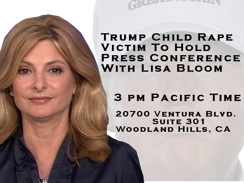 WOMAN WHO SUED DONALD TRUMP FOR CHILD RAPE WILL APPEAR FOR THE FIRST TIME AND SPEAK OUT WITH HER NEW ATTORNEY LISA BLOOM TODAY
