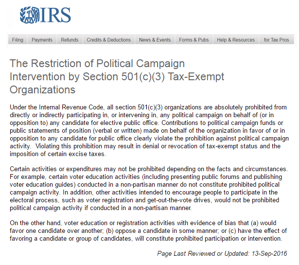 It’s hard to believe the Trump campaign staff can be so ignorant of the rules on political campaigning, particularly since Trump campaign CEO was the CEO of his own non profit. But then, from what I’ve seen of Bannon’s non profit, it’s more likely a case of just ignoring the rules. It’s no skin off Trump’s nose if some Black church in Michigan loses their tax exempt status.