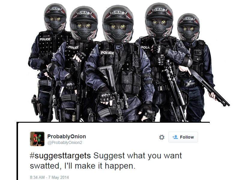 @LizardUnits Is @FinestSquad Swatted yet? Or should I step in and do it myself 😉 Fri Dec 19 00:49:19 +0000 2014