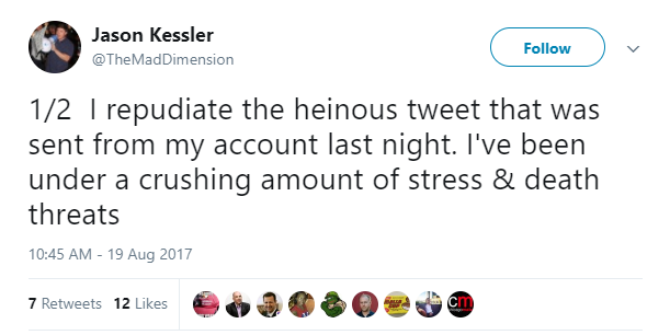 I guess there was enough backlash from his peers that Kessler repudiated his tweet without actually taking responsibility for posting it. And without knowing the definition of “repudiate”.
