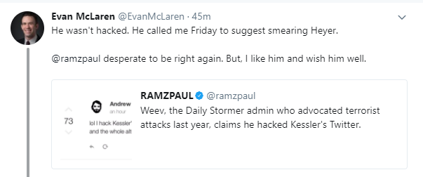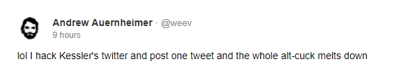 But Kessler claimed he was hacked and the Tiny Nazi, Weev Auernheimer, claimed he was the one who did the hacking.