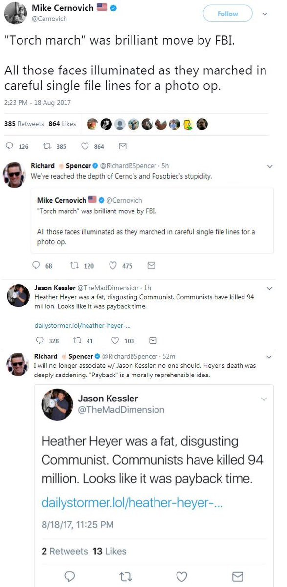 Meanwhile the Alt Right are going at each other with accusations and acrimony.