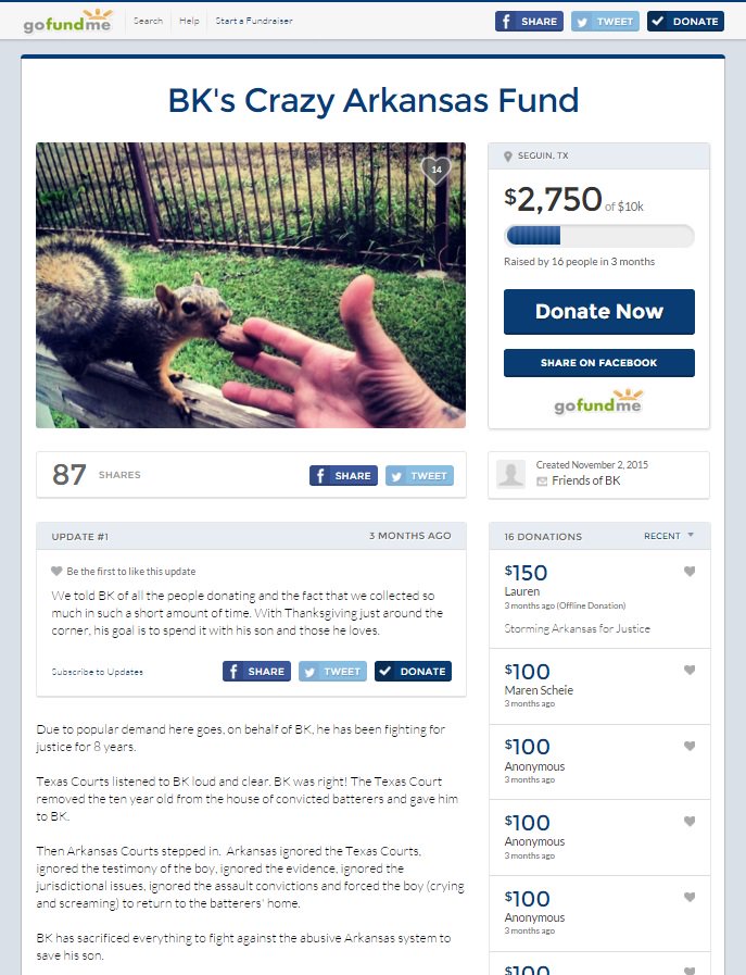 So before Brandon spends any donated money to fight Arkansas courts he’ll first have to pay off that $25,000. Any court in any state would find it hard to give custody to a dead beat dad whose years behind in child support.