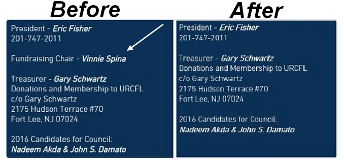 So naturally I was shocked to see that Vinnie was the Fundraising Chair for the Fort Lee GOP and contacted them to see if they were aware of Spina’s history of misappropriation of funds.