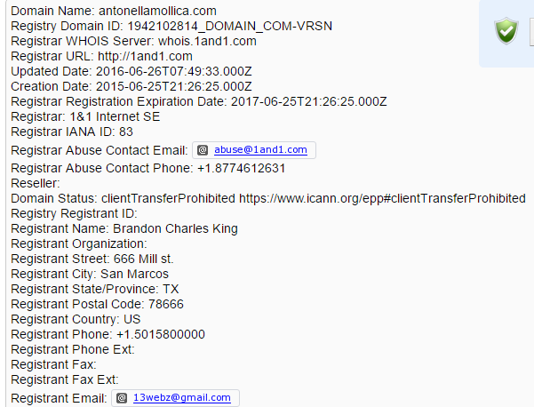 The website in her name is was created May 25th, 2015 and was renewed again last year. it’s a violation of Texas laws on online impersonation. How clever of Vinnie to find a tool dumb enough to violate the laws of his state and register the site for her .