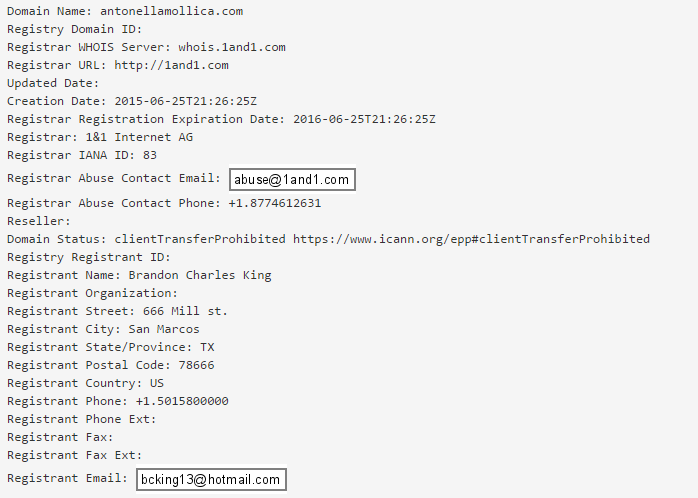 Brandon doesn’t live in San Marcos. The site was originally registered via his hotmail address.