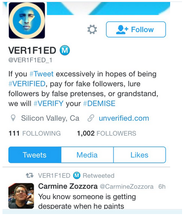 Ironically her bio for ver1f1ed_1 talks about buying fake followers but she buys followers to boost her count from 109 to over 1002